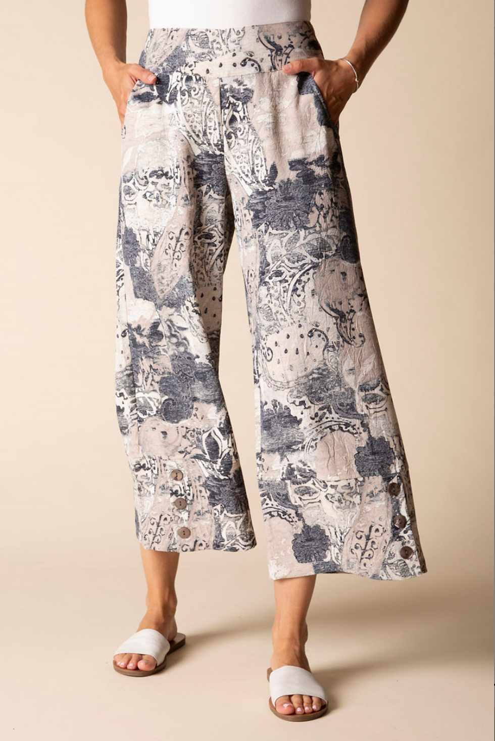 Designed for women of all ages and lifestyles, the Destination Unknown Spring Medley Crop Pant at Judy Wear Boutique blends comfort and style effortlessly. Crafted from polyester fabric with a 25 inch inseam, it features a flat front waist and convenient elastic back pockets for that perfect fit and functionality. This versatile pant pairs beautifully with its matching top or complements any white, navy, or beige top in your wardrobe. Ideal for professional settings or casual outings, it reflects Judy Wear Boutique’s commitment to fashion that adapts to you. Elevate your everyday look with a piece that balances quality and ease. Run true to size. Button cuff detail.